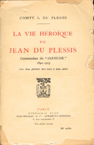Plessis (Comte J. du) La vie héroïque de Jean du Plessis - Commandant du "Dixmude" 1892-1923, Librairie Plon, Paris, 1924, 350 p.