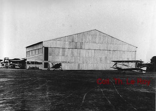 Il y avait encore sur le terrain un des deux hangars a dirigeables ou il etait possible de les loger, mais durant l'ete 1936, un hangar pour avions (30 x 25 m) etait mis en chantier par la Chambre de commerce, de meme qu'un bureau, un atelier et un bar et un club-house.