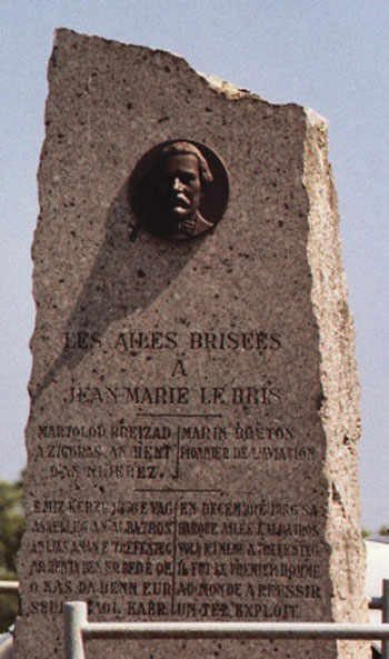 Mise en place en 1968 par Gaston Decoop avec le soutien des Ailes brisées, la stèle actuellement visible au village de Tréfeuntec (Plonévez-Porzay) en remplace une autre édifiée par Yves Peslin en 1956 mais détruite par des vandales. Elle a été inaugurée en mai 1973, en présence des autorités locales. A cette occasion, Decoop avait rassemblé les descendants des frères de Le Bris, car celui-ci n'avait déjà plus d'héritiers directs.